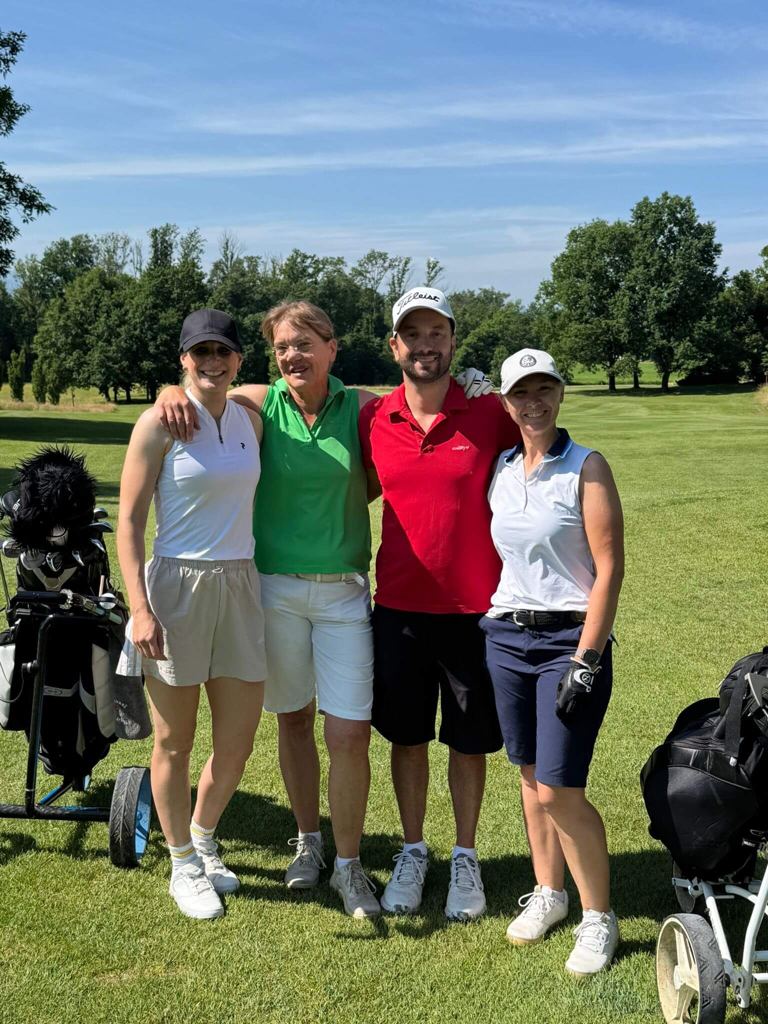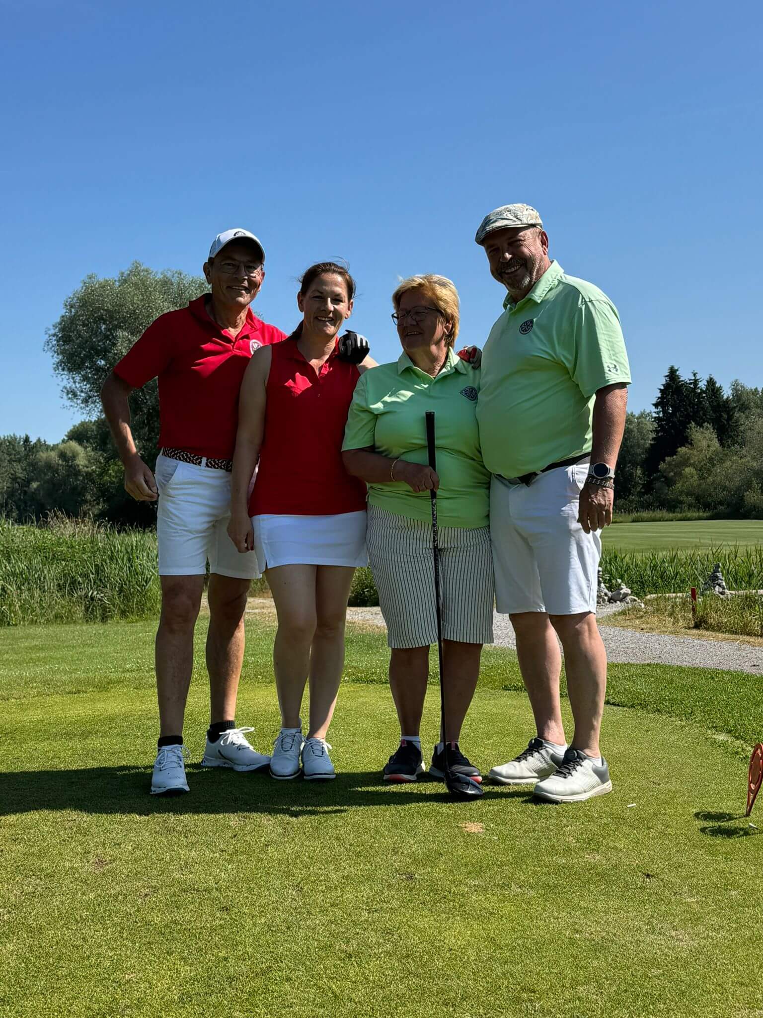 Gespielt wurde im beliebten Texas Scramble Format, das nicht nur sportlich anspruchsvoll, sondern auch besonders teamorientiert ist. Pünktlich um 10:00 Uhr fiel der Startschuss per Kanonenstart – und damit gingen 84 Teilnehmerinnen und Teilnehmer, aufgeteilt in 42 Teams, gleichzeitig auf die Runde.