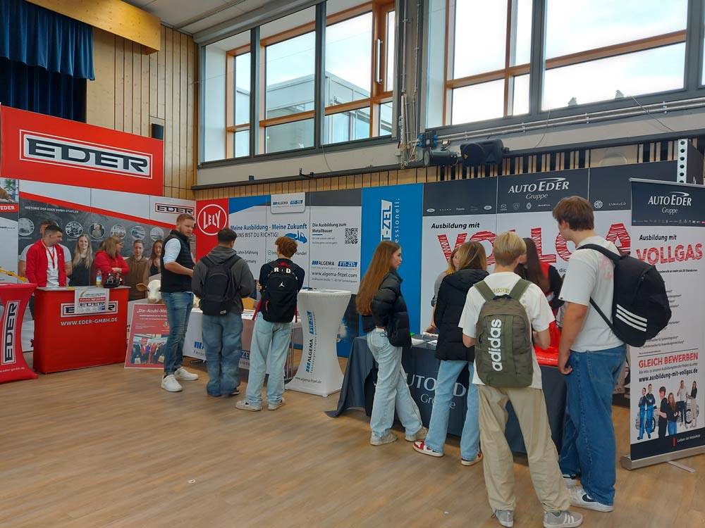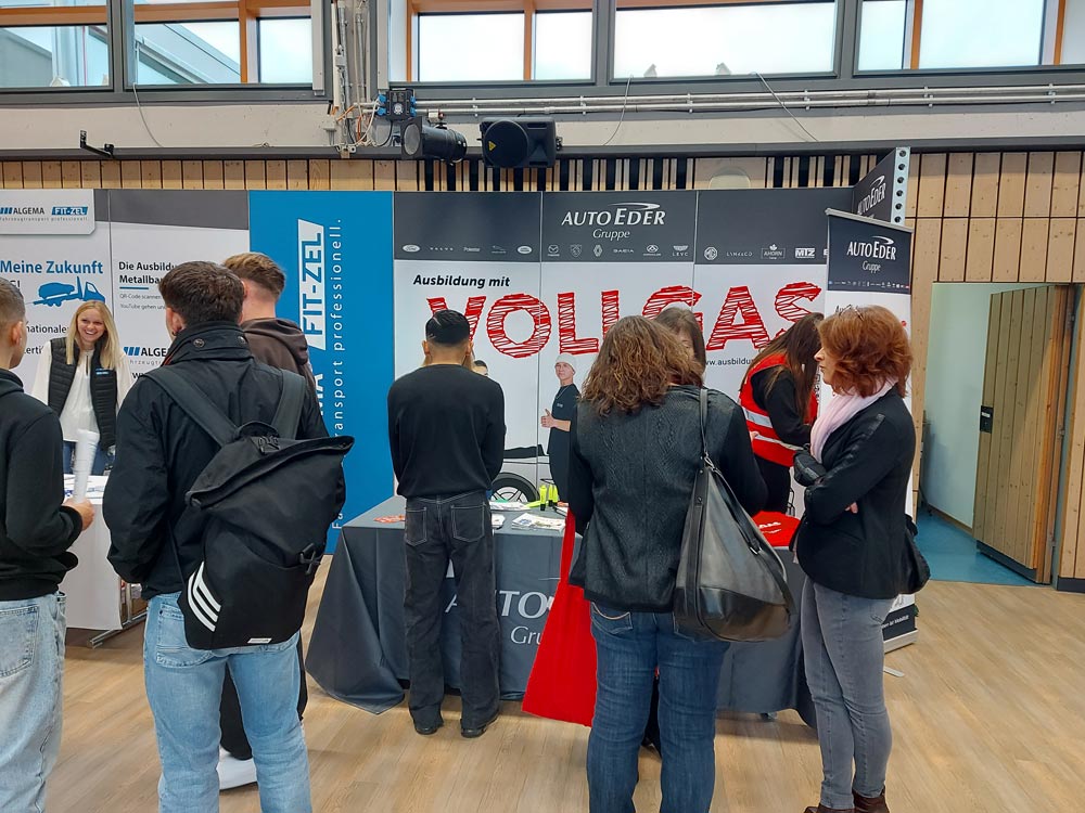 Am Freitag, den 20.10.23, fand an der Justus-von-Liebig-Mittelschule die Berufsinformationsmesse statt, an denen die interessierten Schüler*innen, zu den verschiedenen Ausbildungsberufen der Auto Eder Gruppe, informiert wurden.