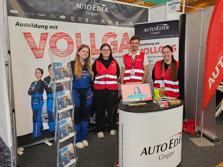 Am vergangenen Samstag, den 04. Mai 2024, fand in der Auerbräuhalle in Rosenheim die Ausbildungsmesse "IHK-Jobfit" statt. Stellvertretend für die Auto Eder Gruppe waren drei unserer Azubis gemeinsam mit Frau Morbitzer und Frau Andrä voller Freude vertreten. Es war eine großartige Gelegenheit junge Menschen über die vielfältigen Ausbildungsmöglichkeiten bei Auto Eder zu informieren.