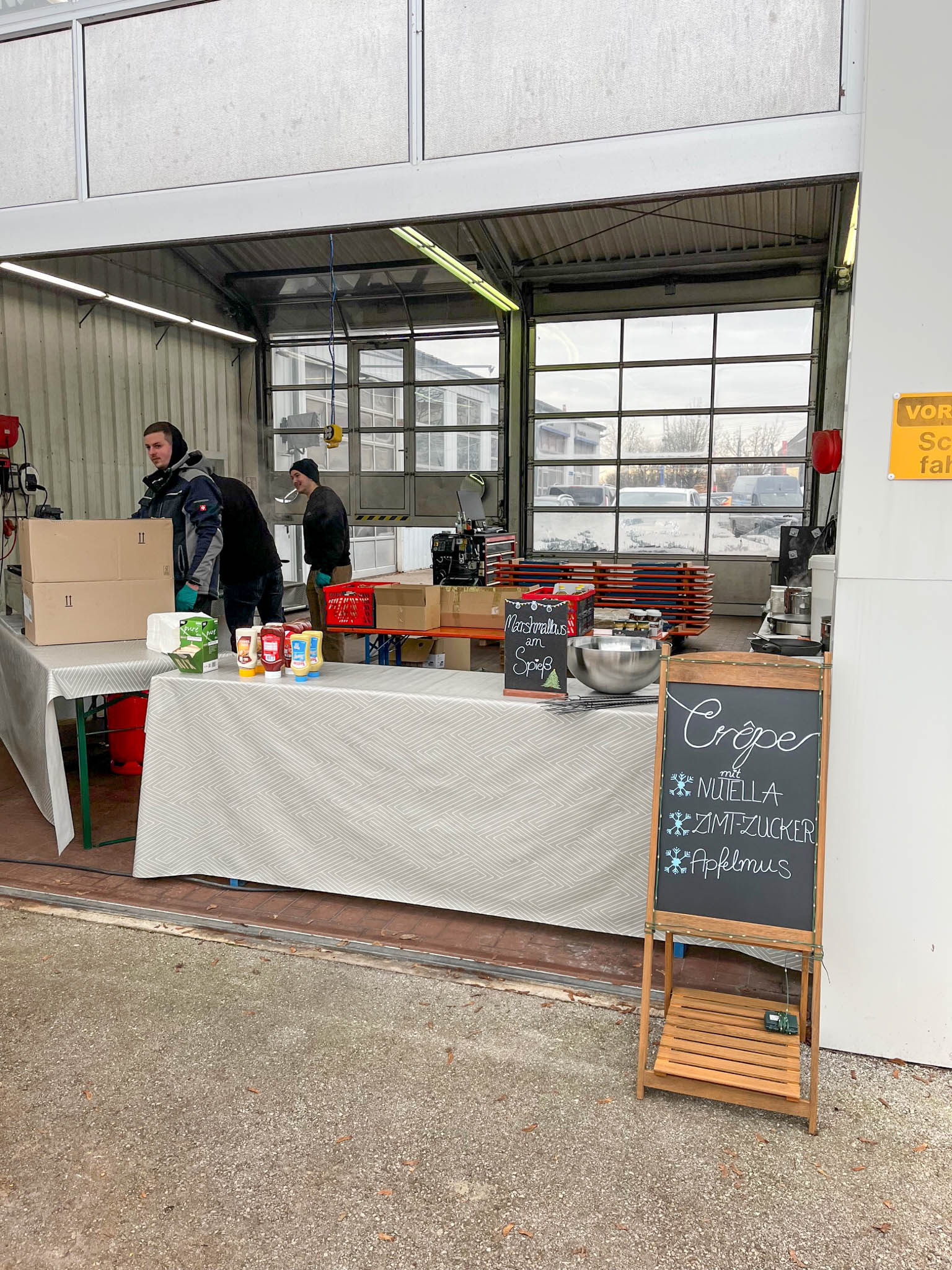 Die Gäste wurden mit Köstlichkeiten verwöhnt. Von herzhaften Bratwurstsemmeln mit knusprigen Pommes über süße Crêpes bis hin zu einer Auswahl an Getränken – hier war für jeden Geschmack etwas dabei. Die stimmungsvolle Atmosphäre wurde durch Feuerschalen noch verstärkt.